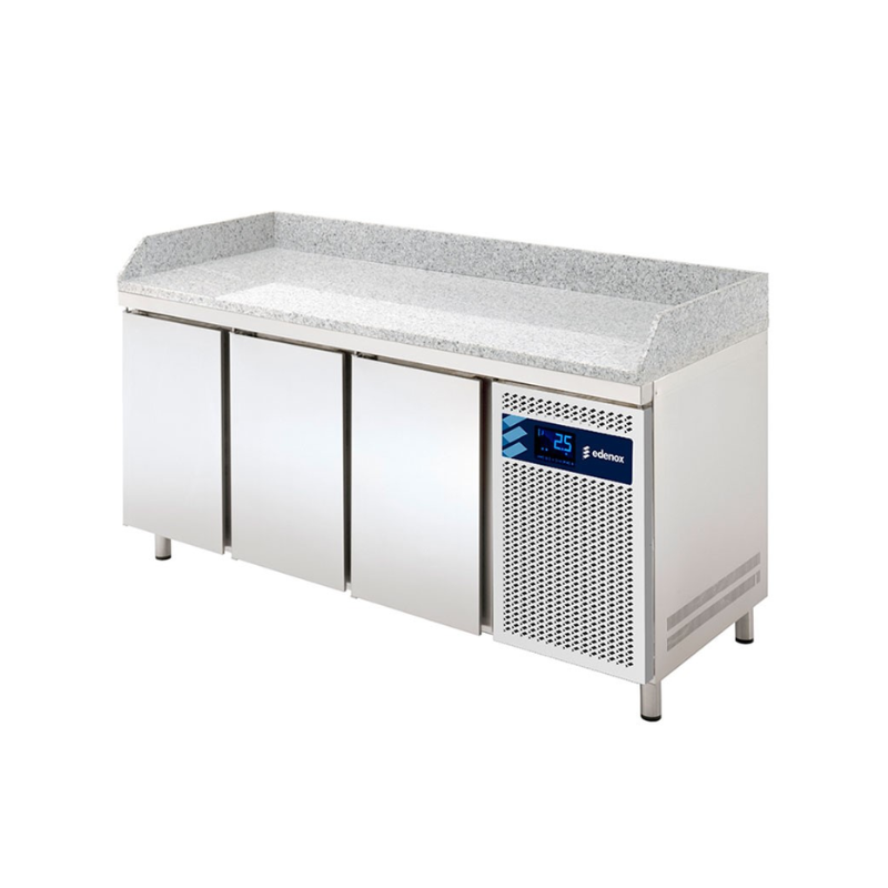 Mesa preparación gama 700 SALAD-CHEFF MFEI70-225-1/6, fabricado exterior (excepto el respaldo) e interior en acero inox AISI-304, con aristas curvas y fondo embutido.