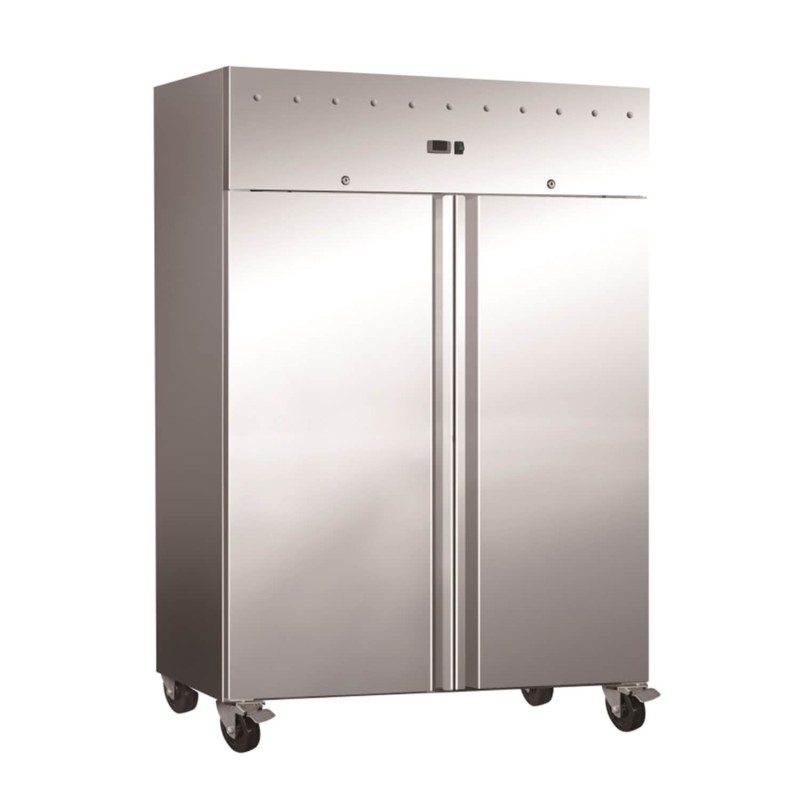 Armario de refrigeración ACR-55-2, fabricado el exterior (excepto respaldo) e interior en acero inox AISI-304, con aristas curvas y fondo embutido.