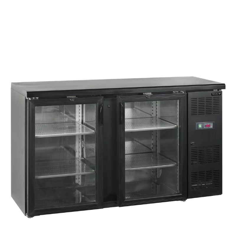 Armario de refrigeración BACKBAR CBC210G en color negro fabricado en robusto acero inoxidable para carga pesada