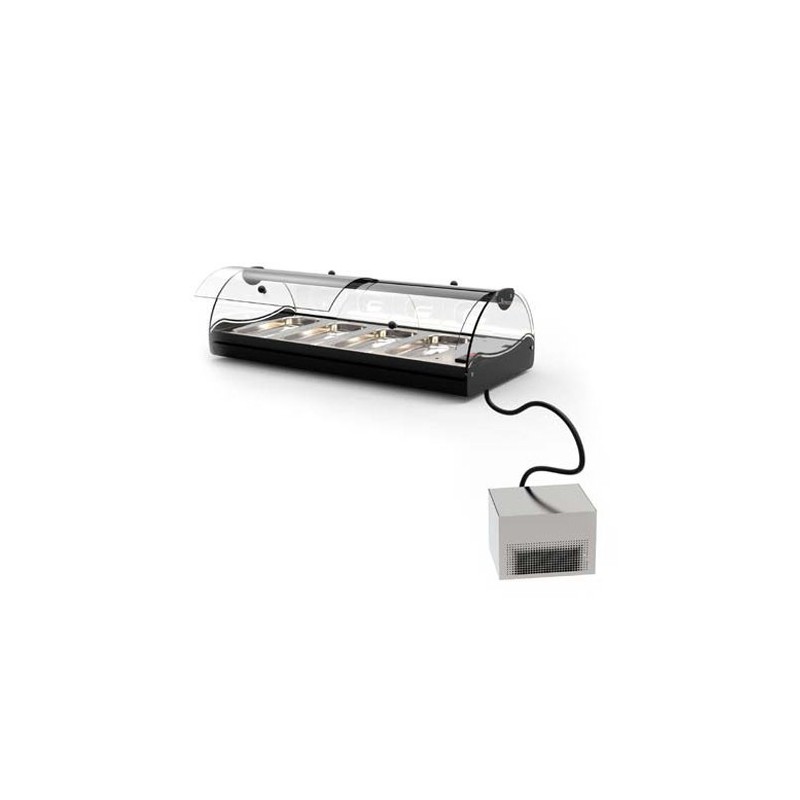 Vitrina refrigerada grupo remoto LOGIC TAPAS, cuba plana, modelos compactos sobremostrador, construidas en acero inoxidable y cristales templados, sin necesidad de instalación con patas regulables.