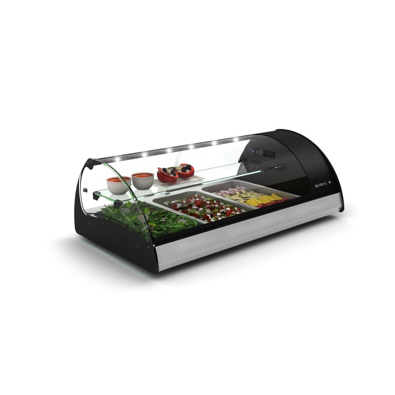 Vitrina expositor refrigerada SPLENDID VS3 tapas, sobremostrador, más robusta, suave y elegante.