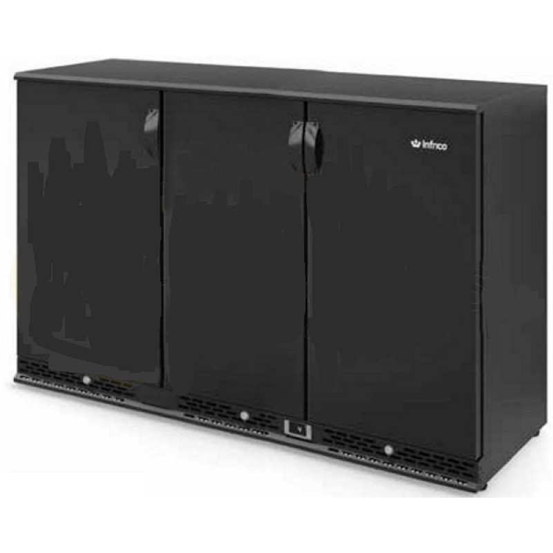Armario refrigerado snack- bar, NRH-350-L, fabricado exterior en acero plastificado negro y el interior en acero plastificado gris.