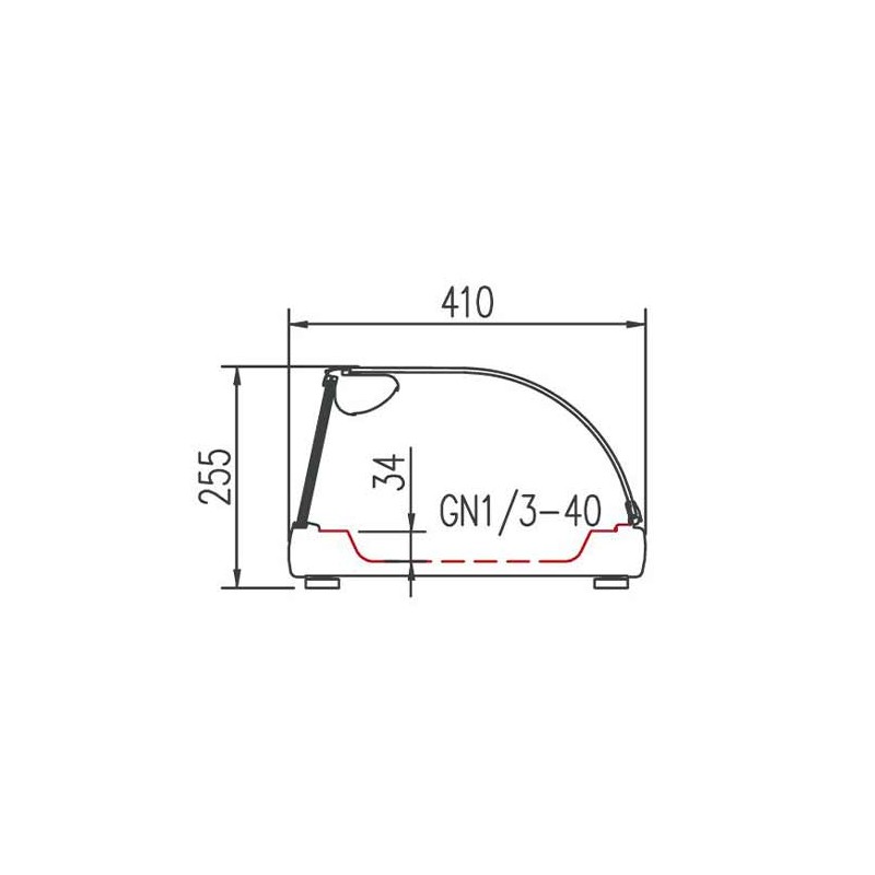 Vitrina con bandejas 20R-F10GR, de cristal curvo con radio de 20º.