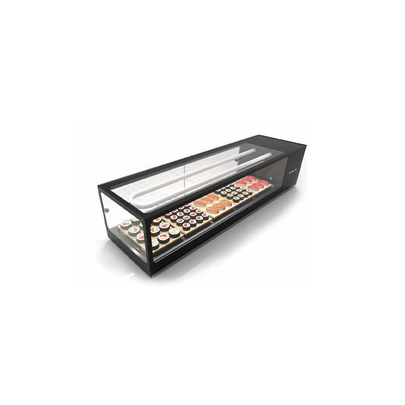Vitrina refrigerada LOGIC SUSHI cuba plana VTLG8SP, única en el mercado construida con cristal cámara, sencilla y elegante para la mejor exposición del producto.