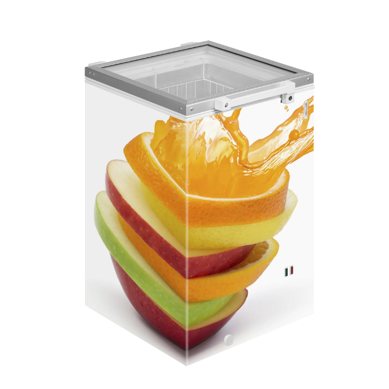 Congelador horizontal con tapa batiente de doble acristalamiento ST160 perfecto para almacenamiento y exposición de productos congelados