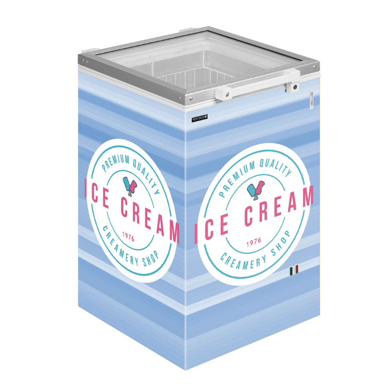 Congelador horizontal con tapa corredera de cristal curvo IC401SCEB perfecto para helados y disponible en varias medidas