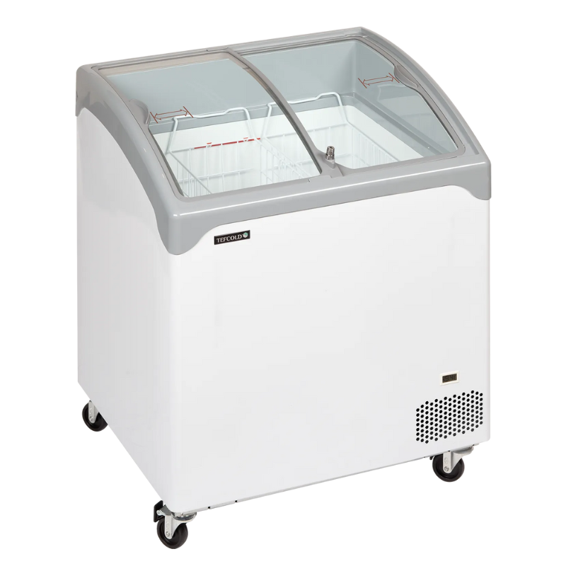 Congelador horizontal con tapa curvada deslizante NIC201SCEB perfecto para exposición de alimentos congelados