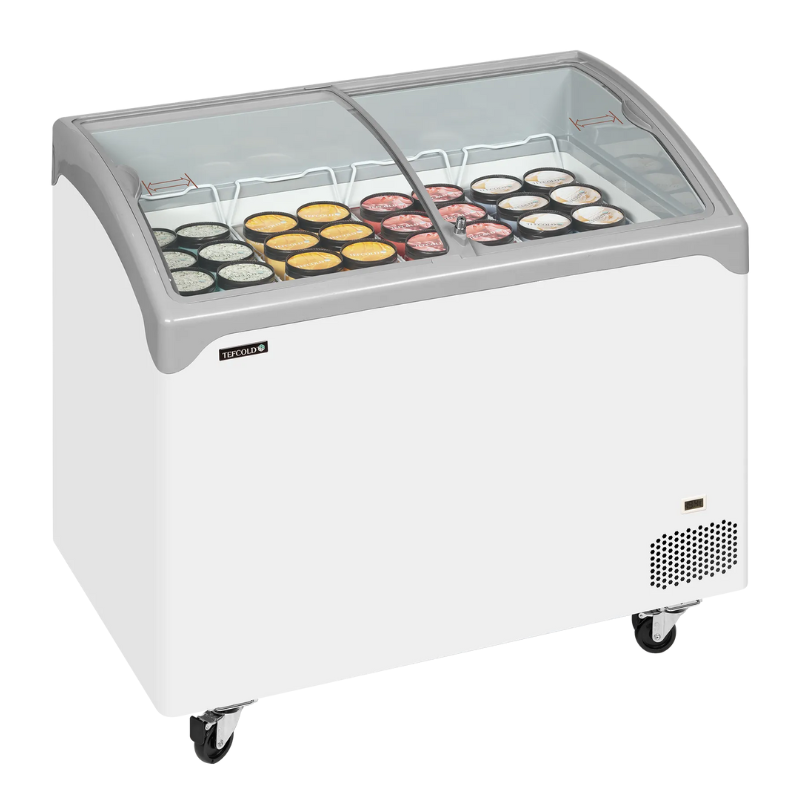 Congelador horizontal con tapa corredera de cristal curvo IC401SCEB perfecto para helados y disponible en varias medidas