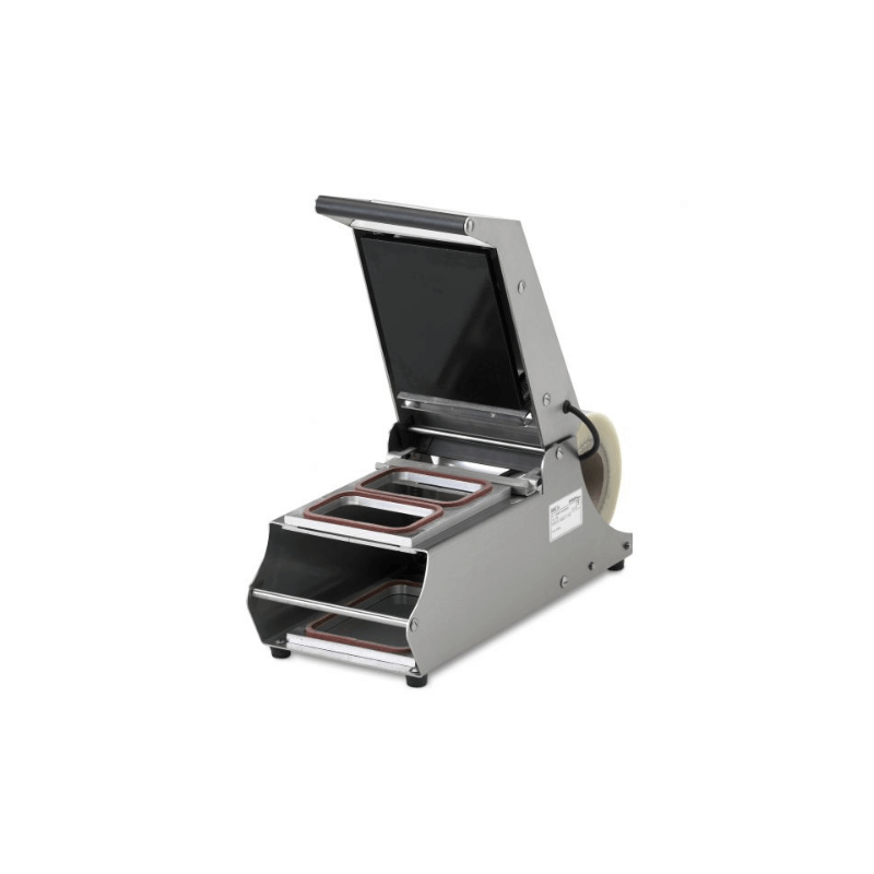 Termoselladora de barquetas manual, TS-150, formato ideal para su uso en pequeños comercios y tiendas de alimentación, supermercados y restauración.