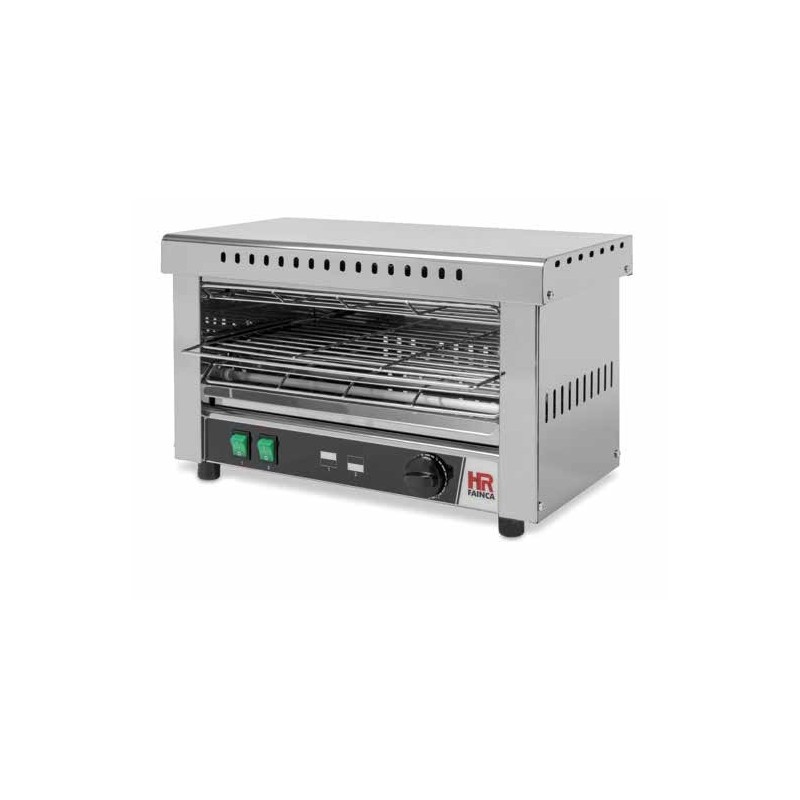 Tostador eléctrico con estructura en acero inoxidable.