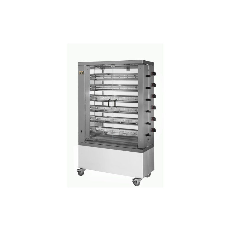 Asador vertical a gas para pollos 6EG EXP, con asado completamente uniforme.