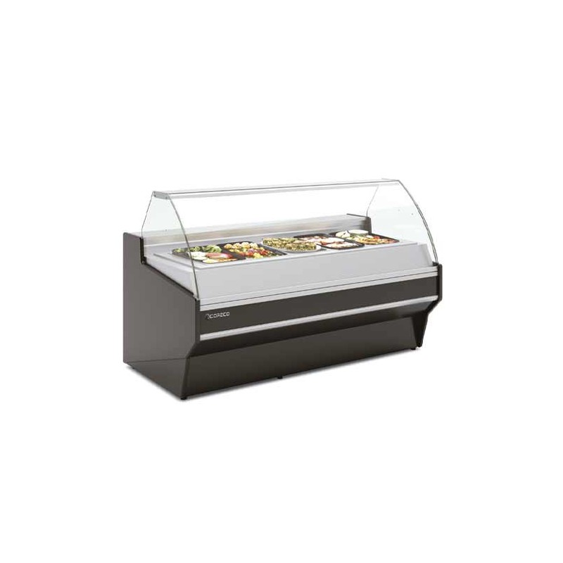 Vitrina calefactora INTEGRA con base IN100/80-140CG, de frontal abierto y acceso trasero.